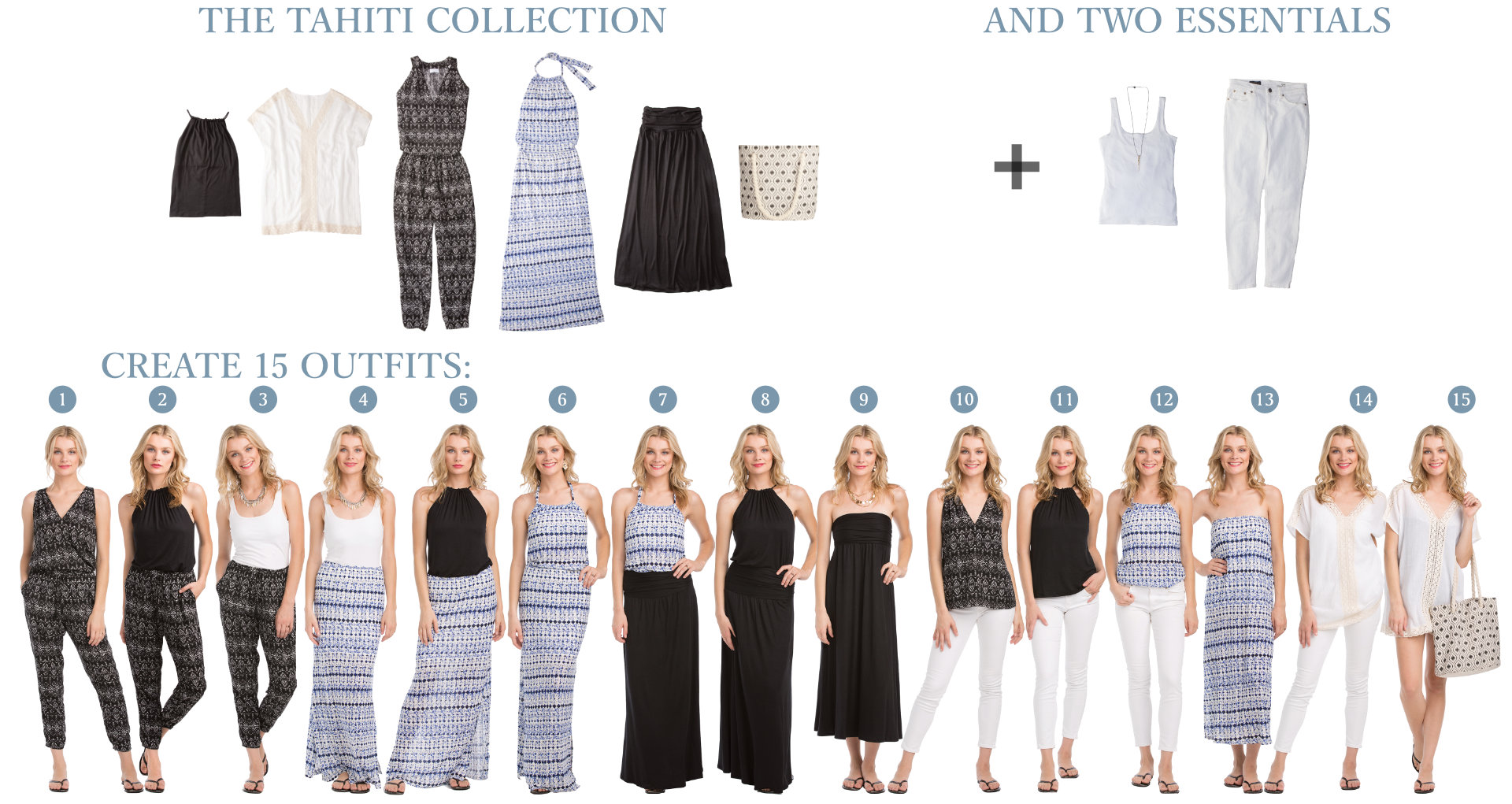 Now let’s talk about this two piece jumpsuit. After browsing the Vacay site and stumbling upon this beauty, I knew that I needed it in my wardrobe. The jumpsuit is part of Vacay’s Tahiti Collection, which when combined with a pair of white pants and a basic tank, can create over 15 outfits (how cool is that!)