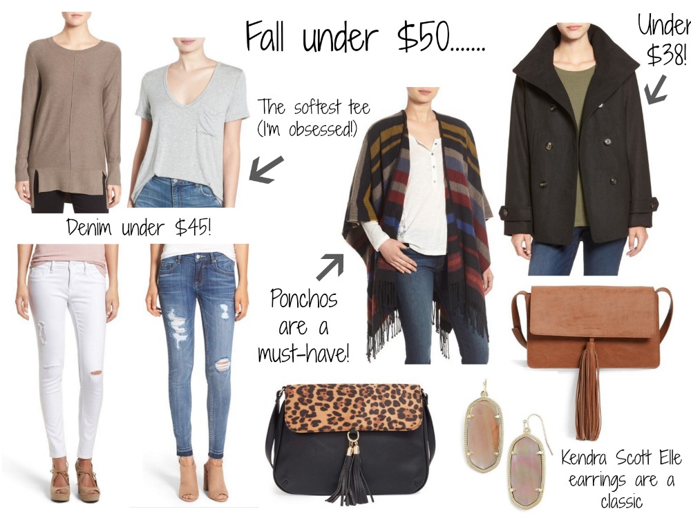 Side Slit Sweater / V-Neck Tee (this is a MUST-have which has been restocked, for only $15 it’s time to stock up now!) / White Distressed Skinnies / Destroyed Skinnies / Striped Poncho (how cute is this?!) / Peacoat (only $38 and comes in a few colors, enough said!) / Faux Leather Crossbody ($30) / Leopard Crossbody (Love this!) / Kendra Scott Earrings