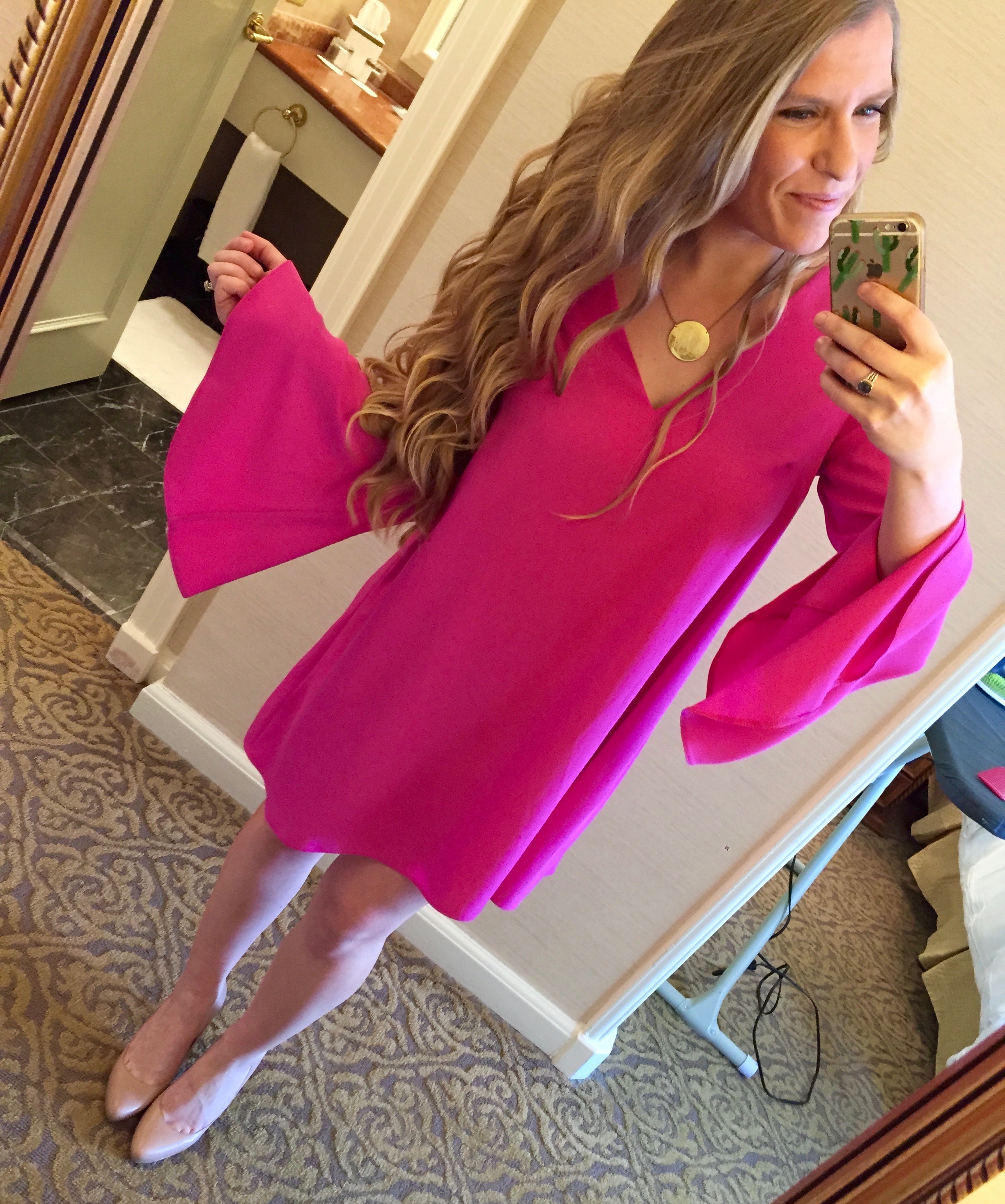 Hot Pink Bell Sleeve Dress ($55 and super flattering!)