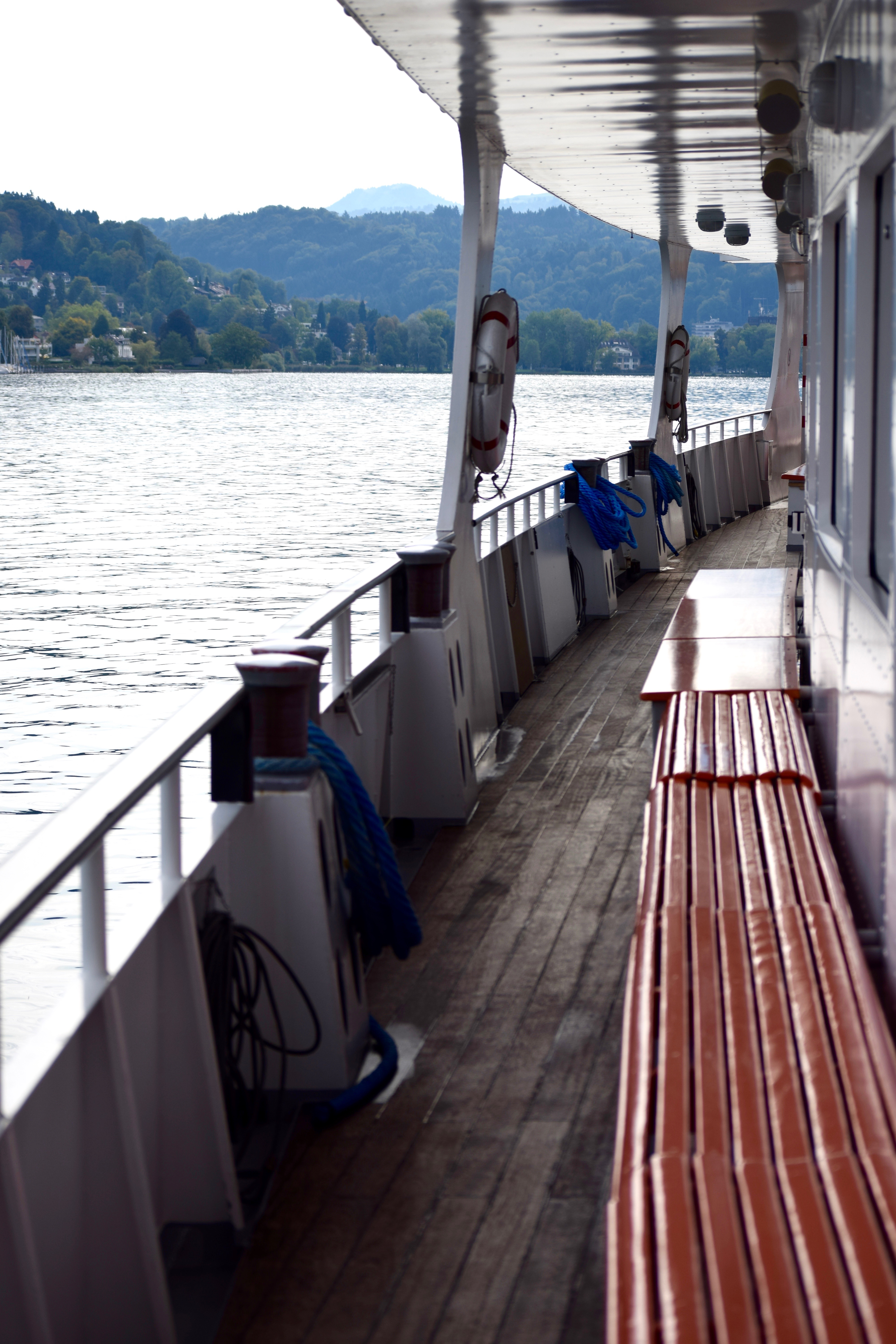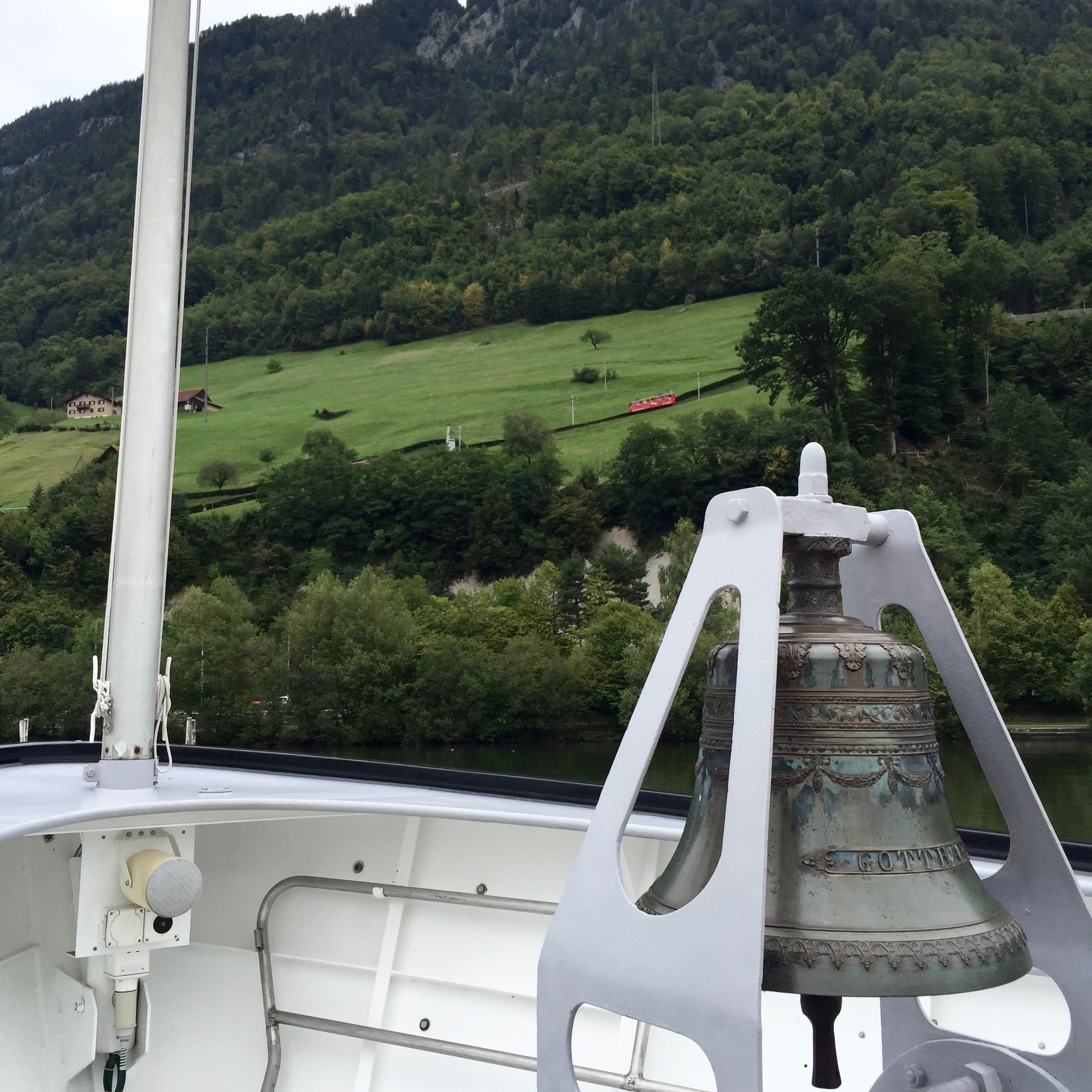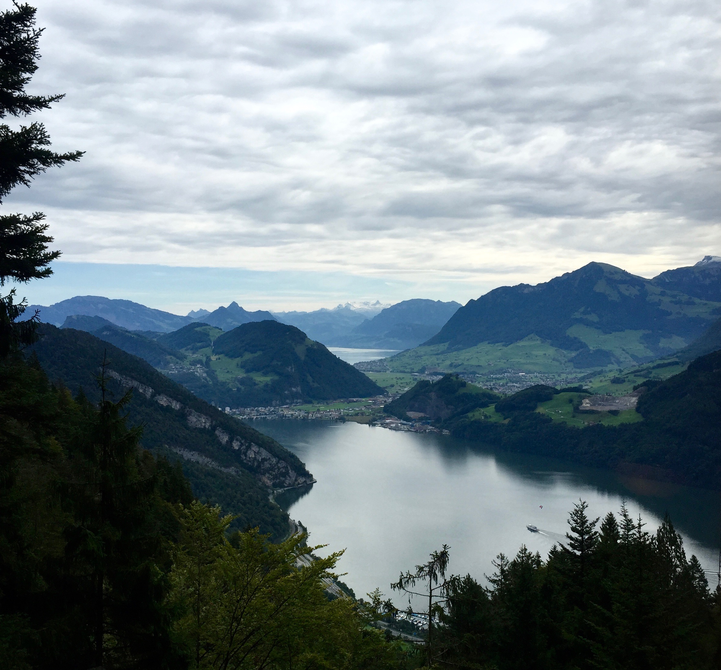 We decided to start the 'Golden Round Trip' with a boat ride on Lake Lucerne. The boat was docked next to the train station which was super convenient, and the ride took us to Alpnachstad about an hour away.