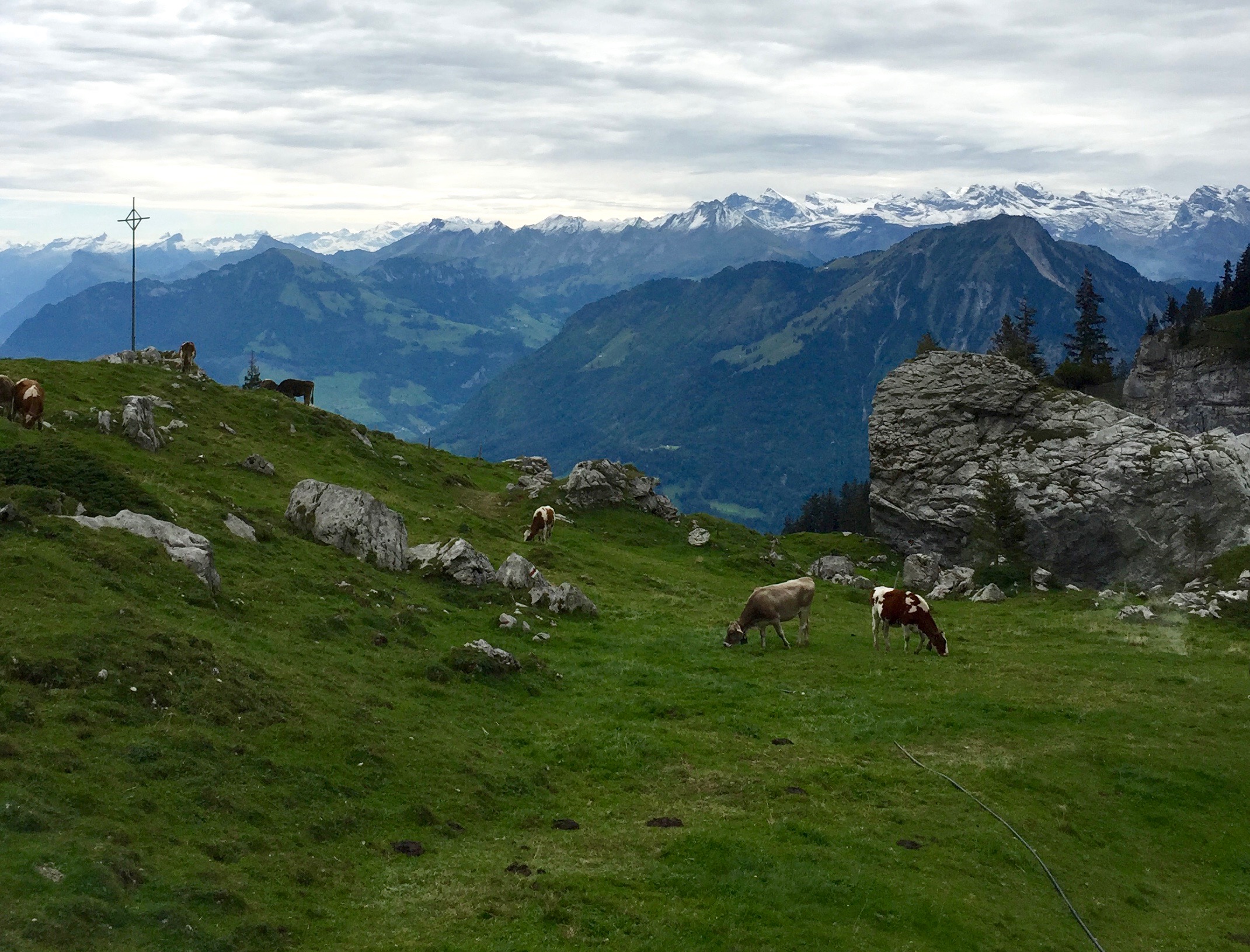 My favorite moments of the day (entire trip?) were here with the Swiss Alps in the distance. I really felt on top of the world! It was so quiet and peaceful, all we could hear were the jingling of the cow bells below. I can't even believe this type of beauty even exists in the world.....
