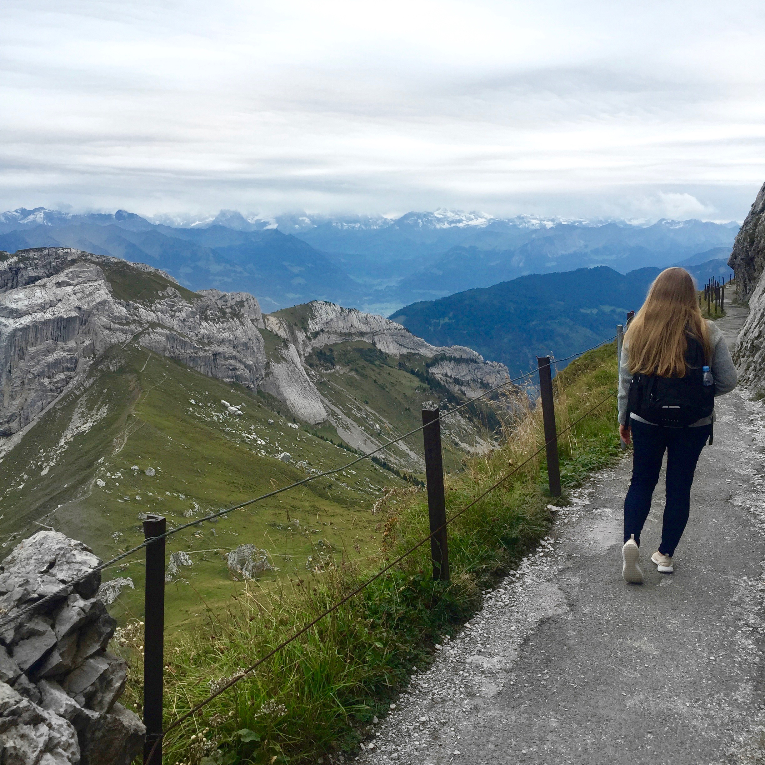 Once we got off the train, we explored the top for about a bit. There's several places to eat, as well as a hotel. No idea how they even built that, the Swiss people are geniuses! We weren't hungry for once since we'd had a huge breakfast earlier, so we decided to set out on the hike below not really knowing what to expect.........
