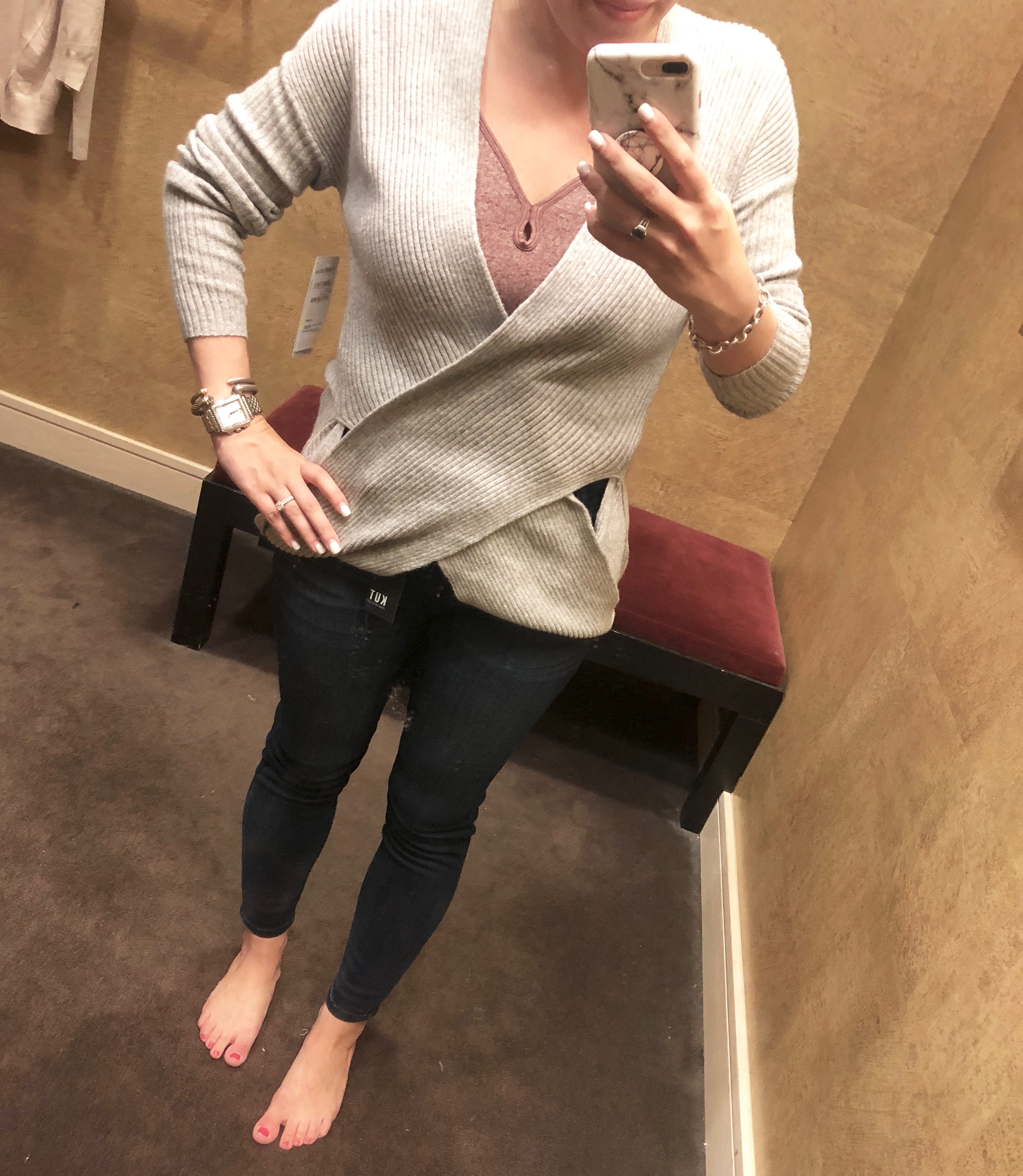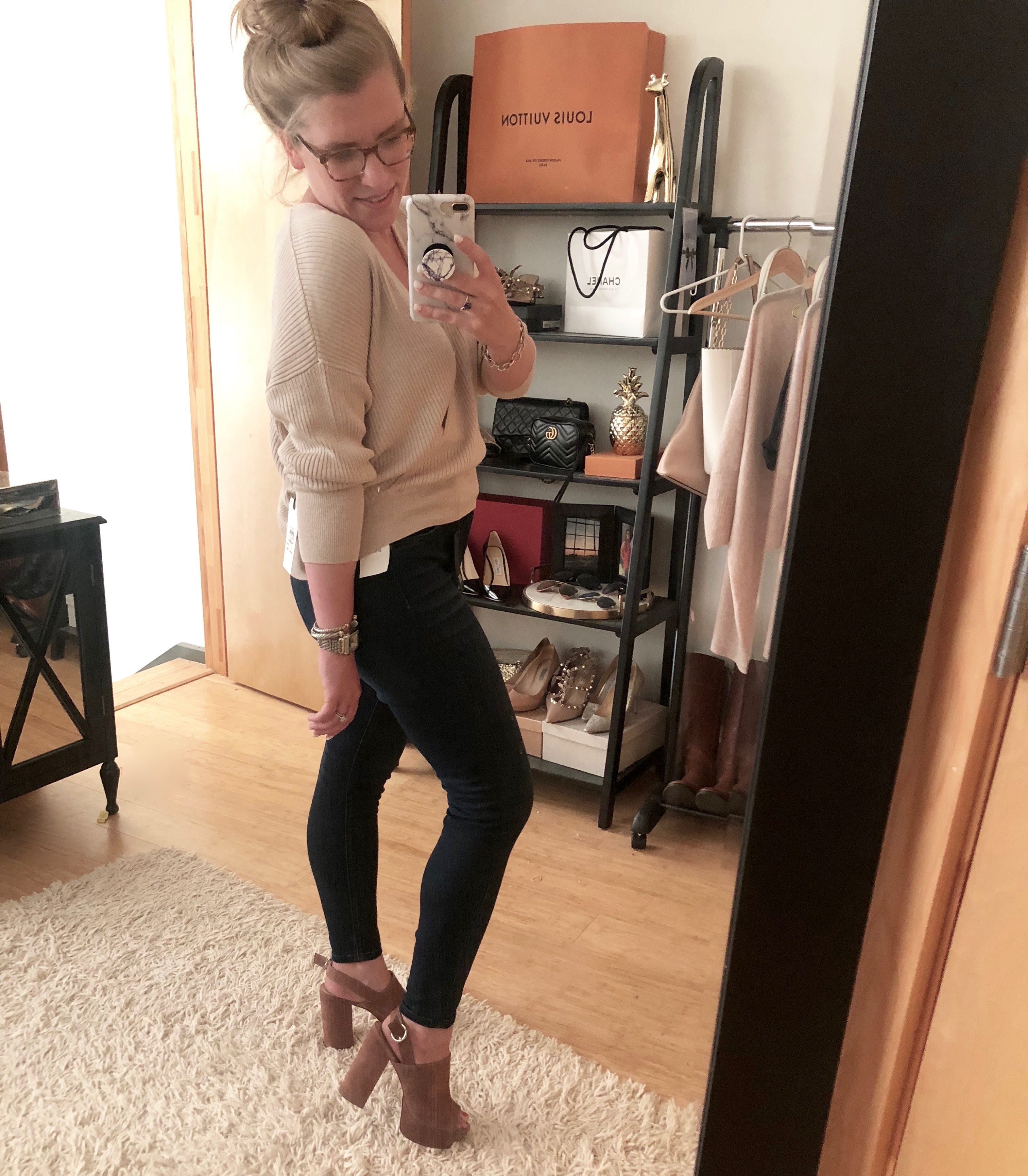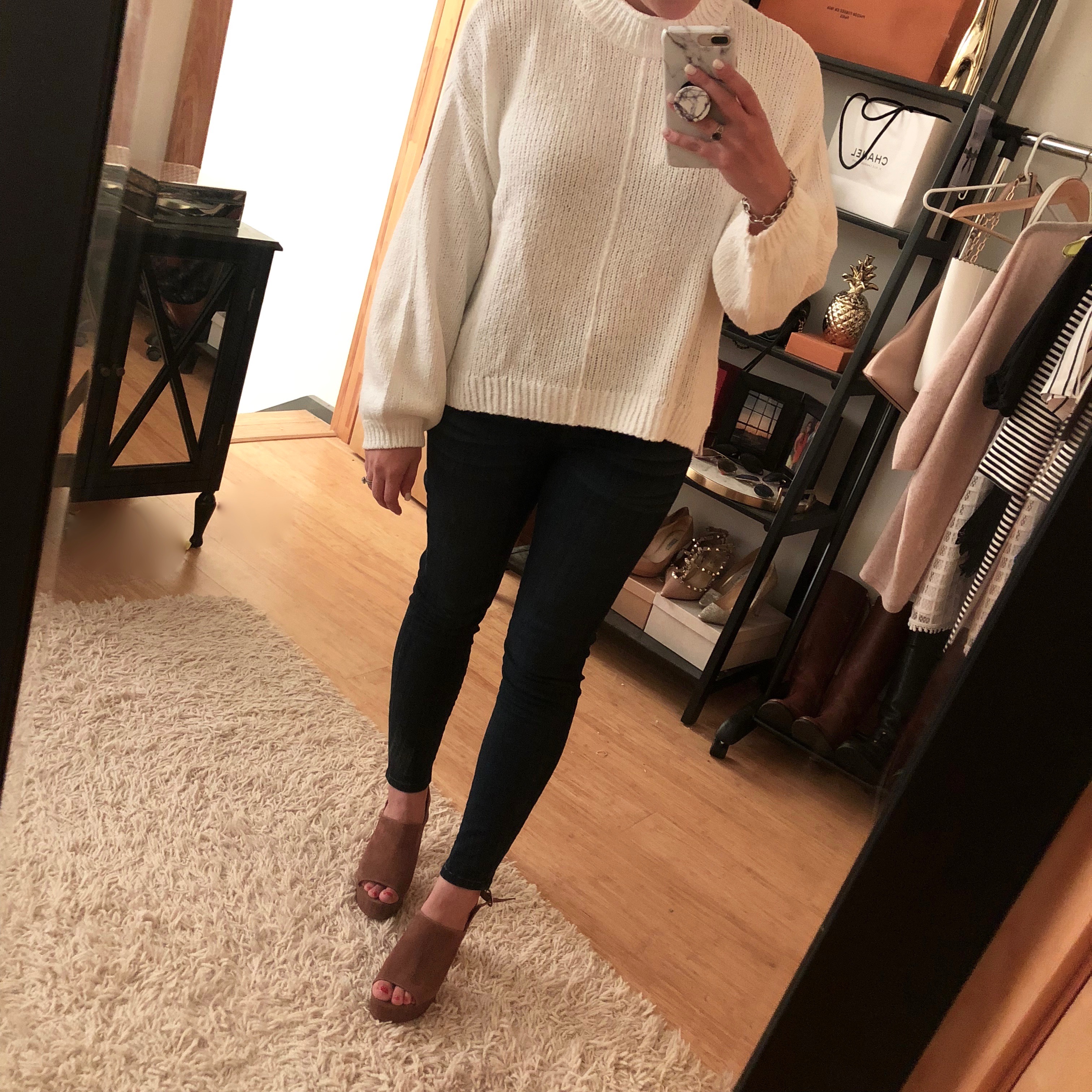 Also just to note, I tried on this similar sweater for $45 and actually preferred my sweater above! I felt like the quality was better, and I was really surprised at the price difference.