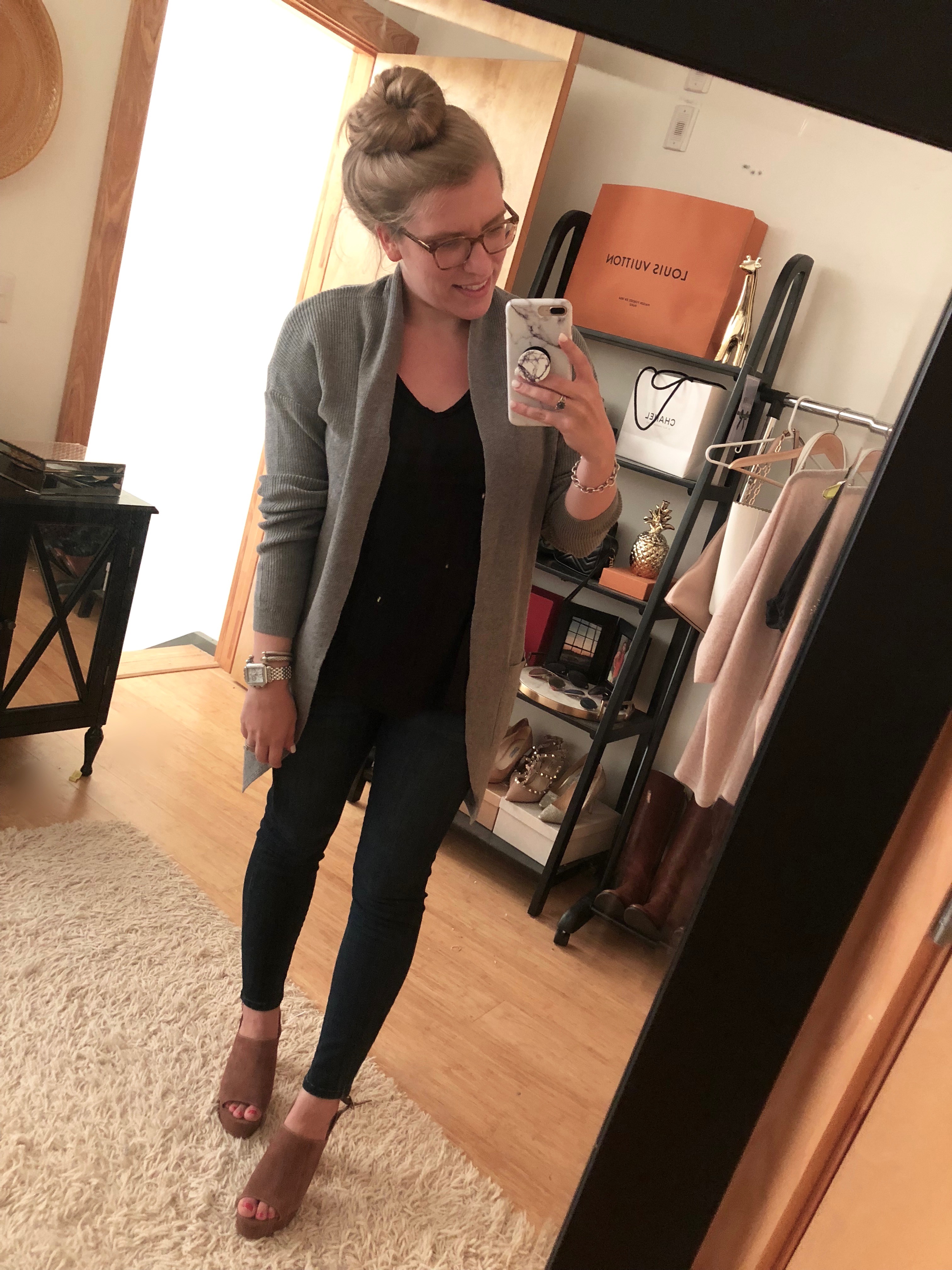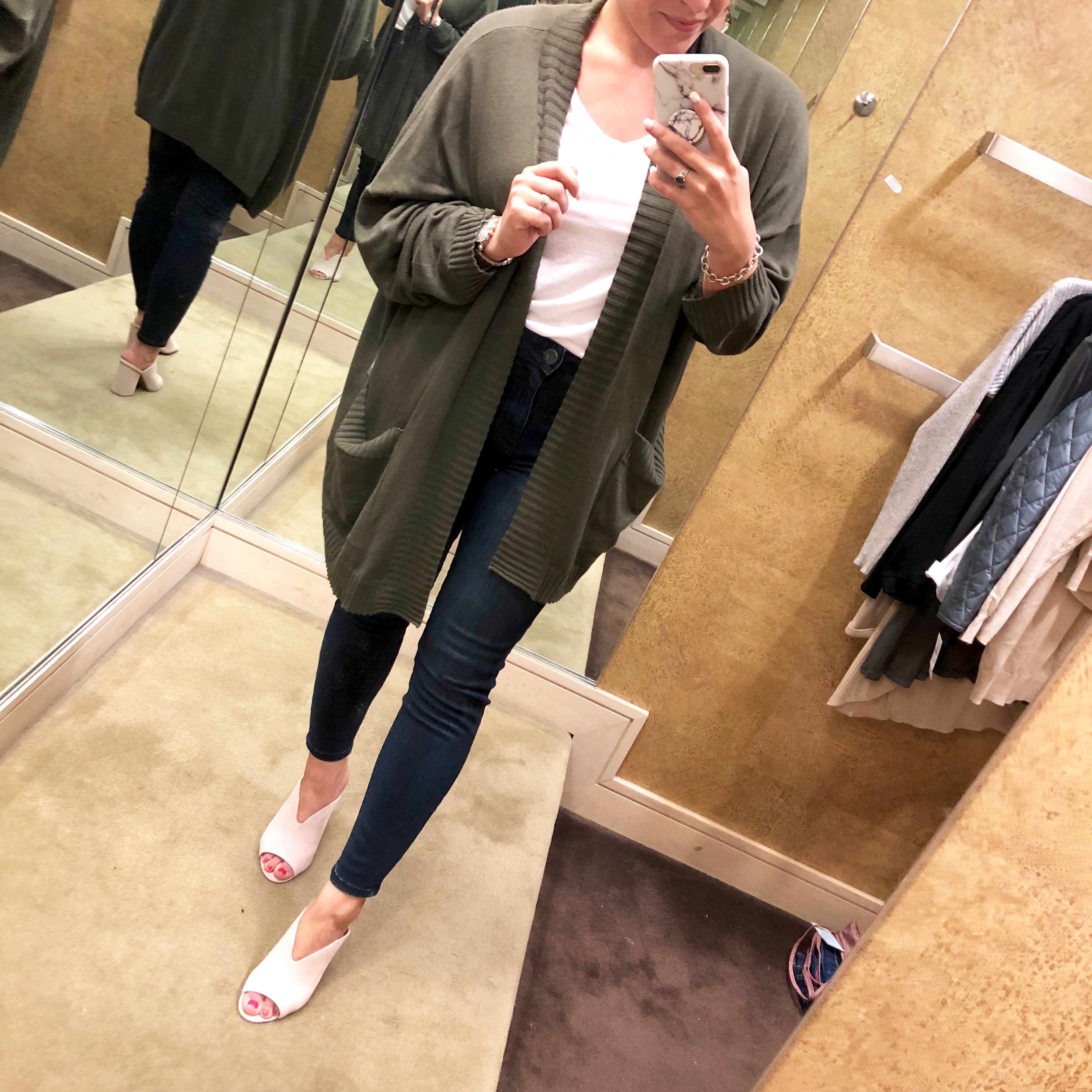 Like I mentioned above, I tried on several cardigans and bought a few different ones from the sale. I think this BP. one above is a really good budget friendly option at about $30. It's long but not too long and the perfect thickness. Based on the fabric, I think it'll also wash well which is always something I consider in my older age! Wearing a size small, so I'd suggest sizing down.