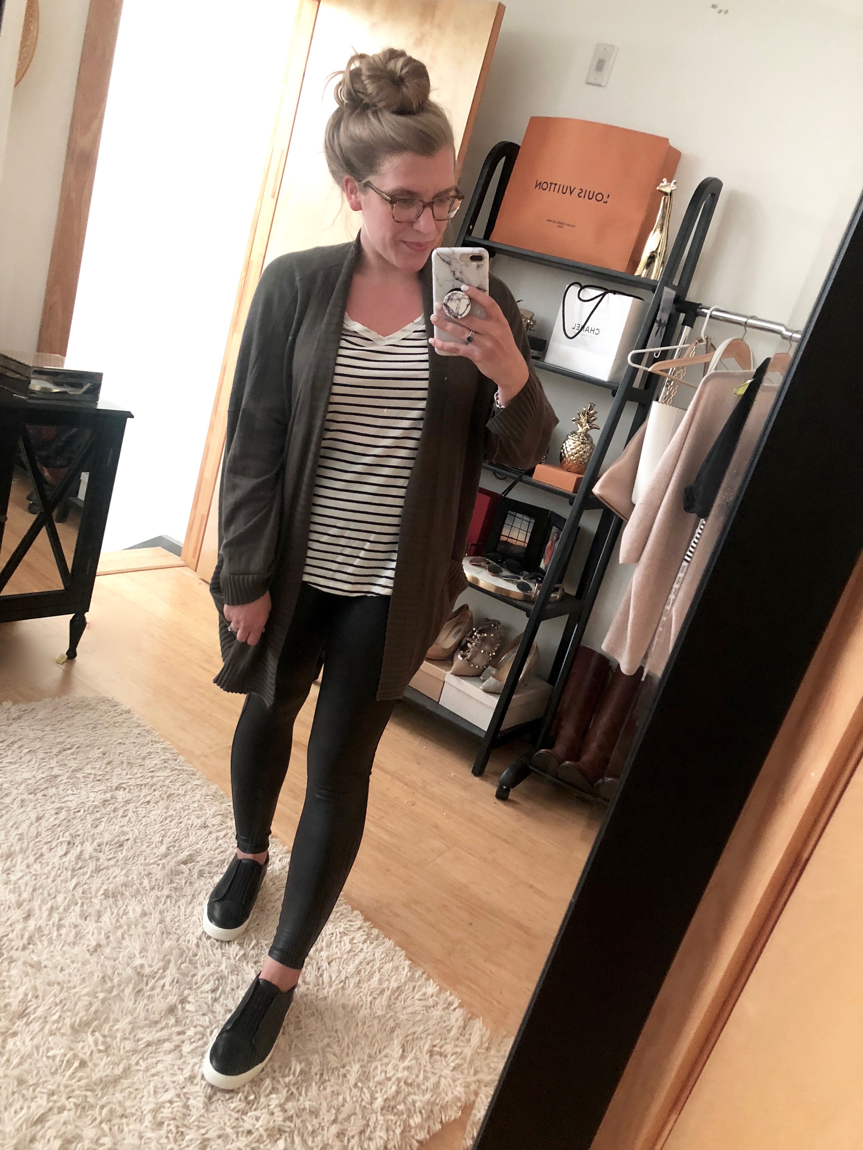 I had a few minutes to get myself together before the sun came up, and I decided to throw on the easiest outfit I could think of.....
