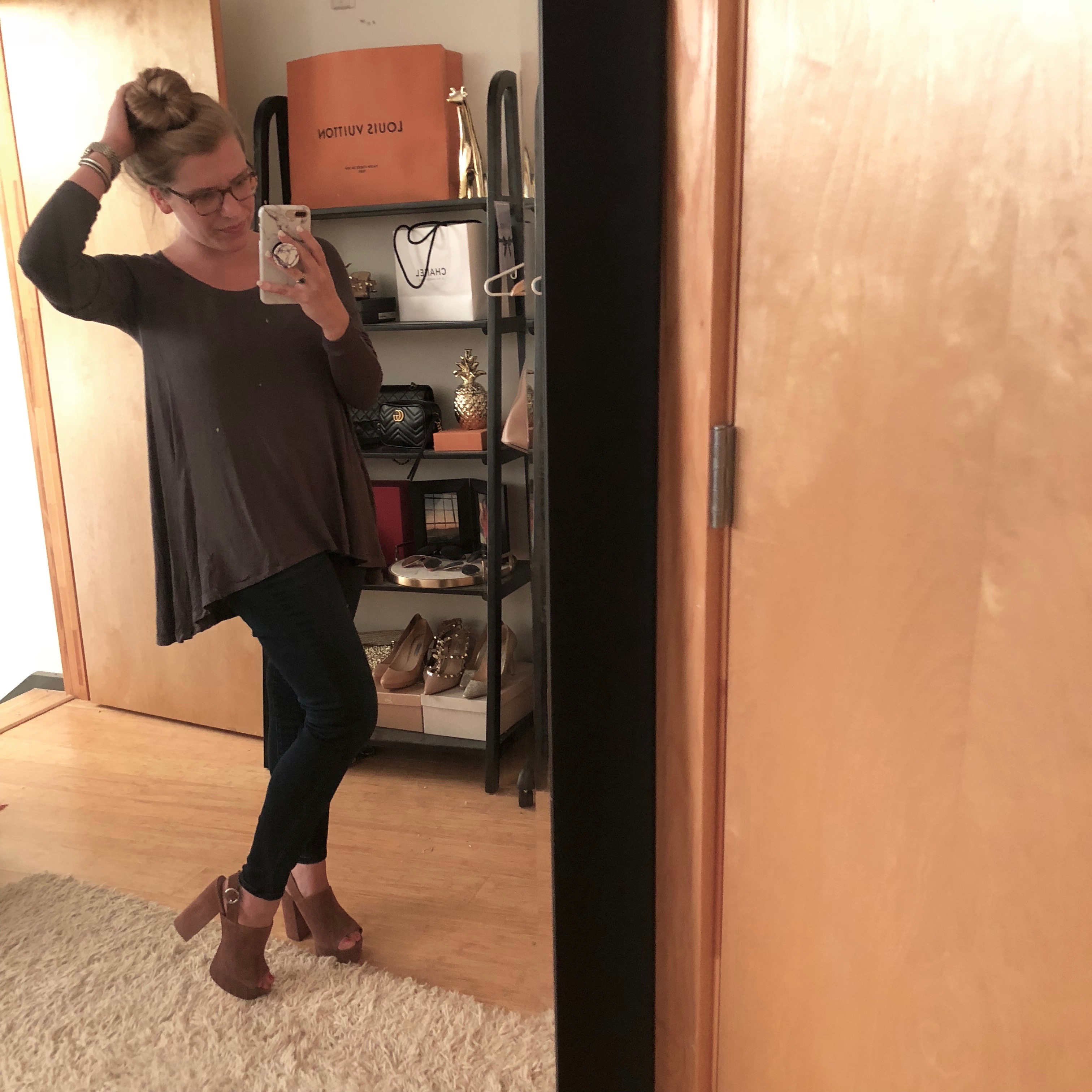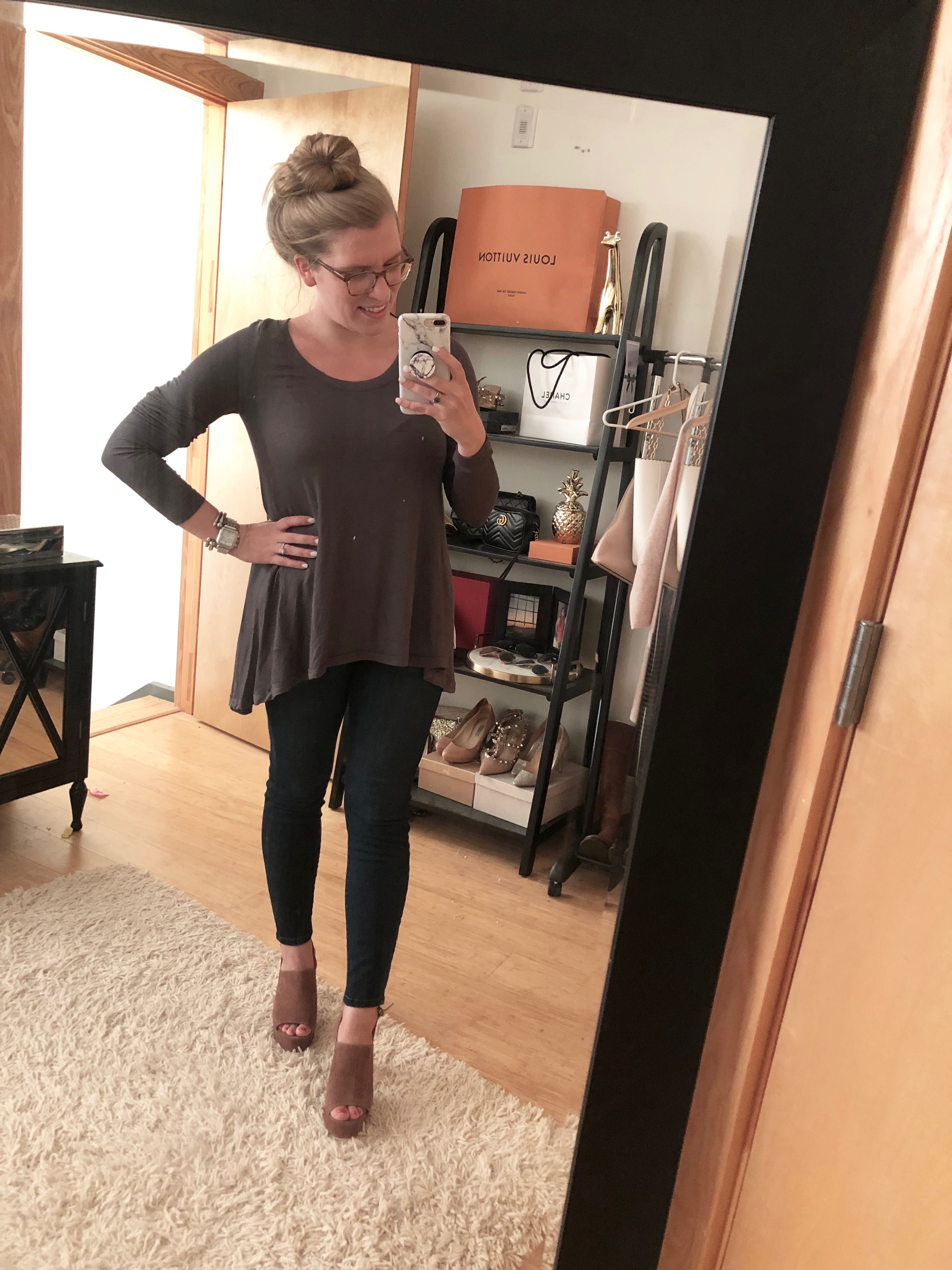 Gibson Top (similar) / Favorite stretchy jeans (the price is SO good and they literally have elastic in the band!) / Nikes (sold out, similar) / Favorite sunglasses